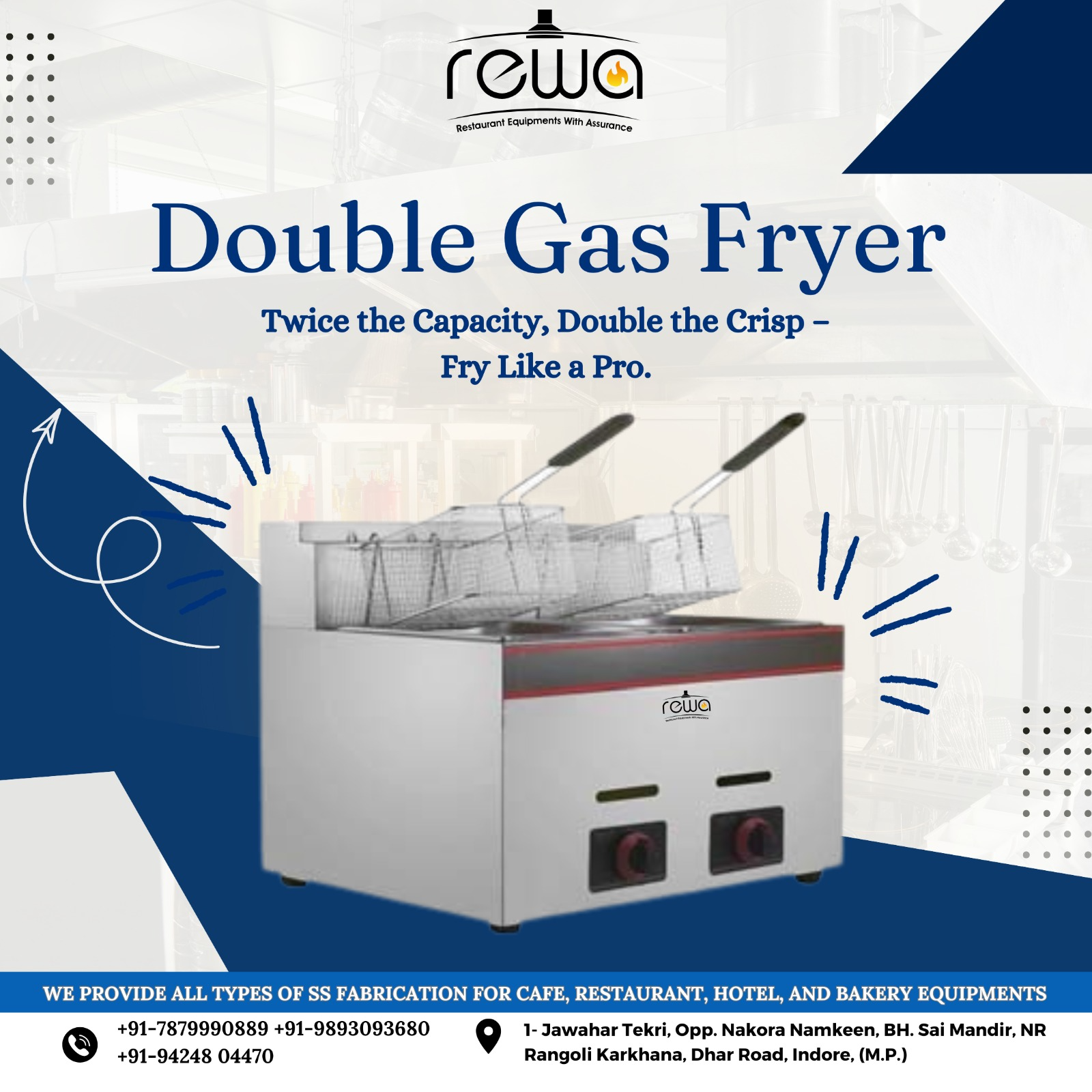 For kitchens that never slow down — Double Gas Fryer = Double Efficiency, Maximum Output. . . Contact: +91-7879990889 . Location :- 1- Jawahar Tekri, Opp. Nakora Namkeen, BH. Sai Mandir, NR Rangoli Karkhana, Dhar Road, Indore, (M.P.) . Visit now: https://rewarefrigeration.blogspot.com/2024/10/in-fast-paced-world-of-hotels-and.html . . . #rewarefrigeration #DoubleFryer #Gasryer#RestaurantEssentials #EfficientStorage #hotelkitchenequipmentpricelist #hotelkitchenequipmentnearme #RestaurantEssentials #HotelKitchenUpgrade #EfficientCooking #hotelkitchenitems #hotelequipmentsupplies #kitchenequipmentinhotel